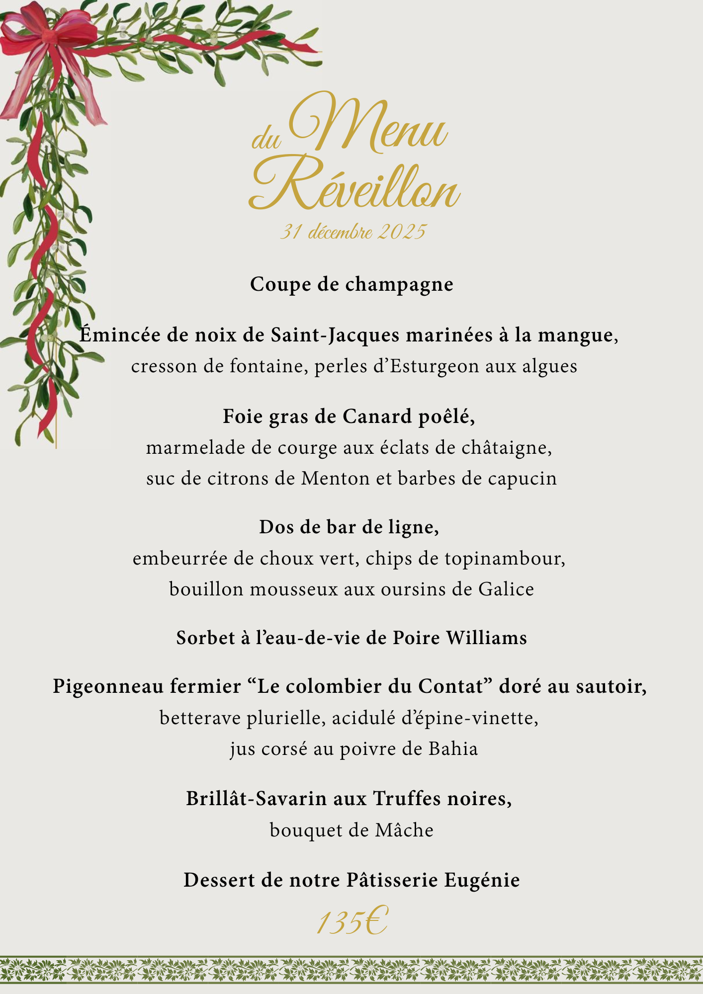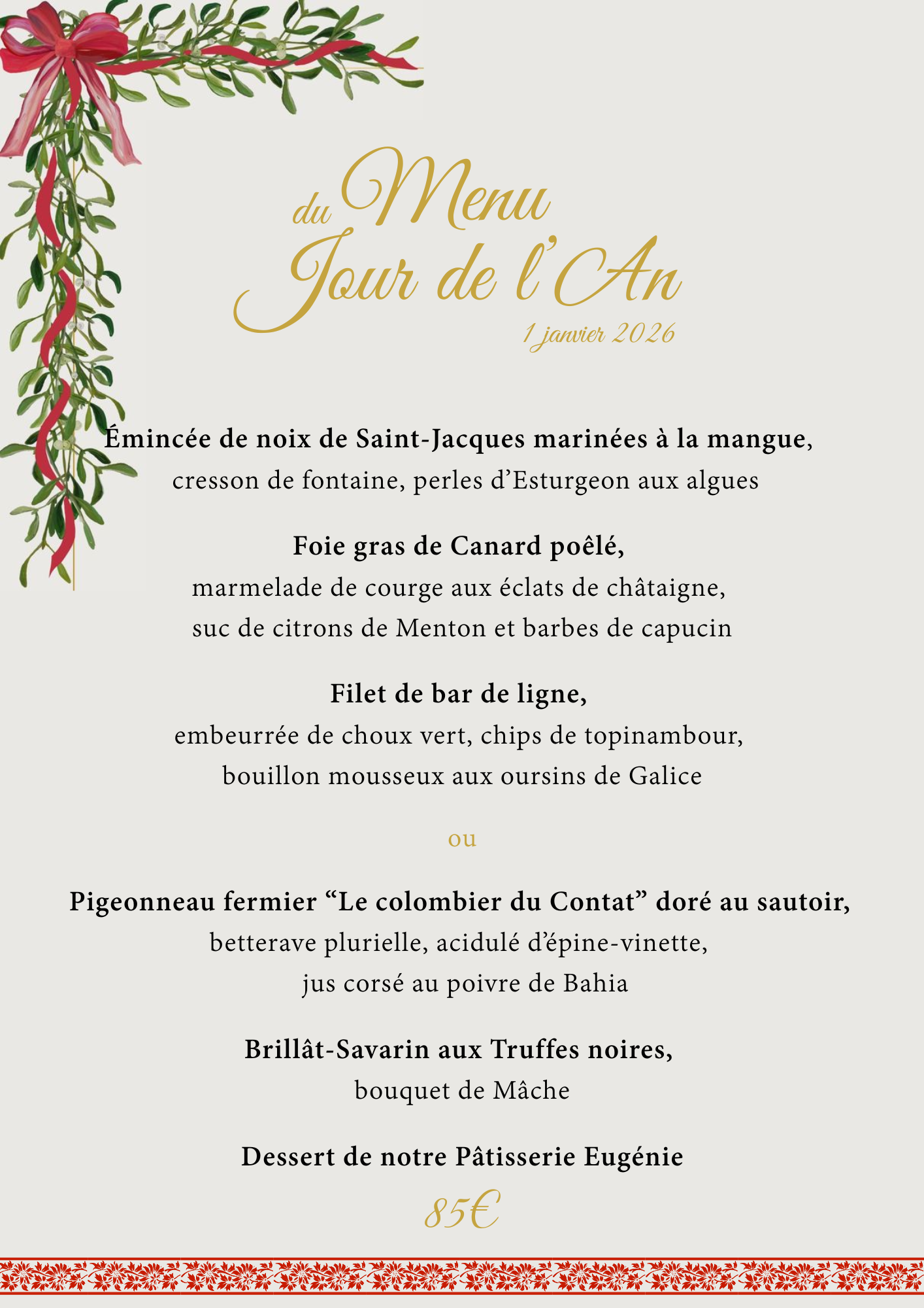 Nous avons le plaisir de vous proposer les Menus pour les fêtes, soigneusement élaboré pour célébrer la nouvelle année.